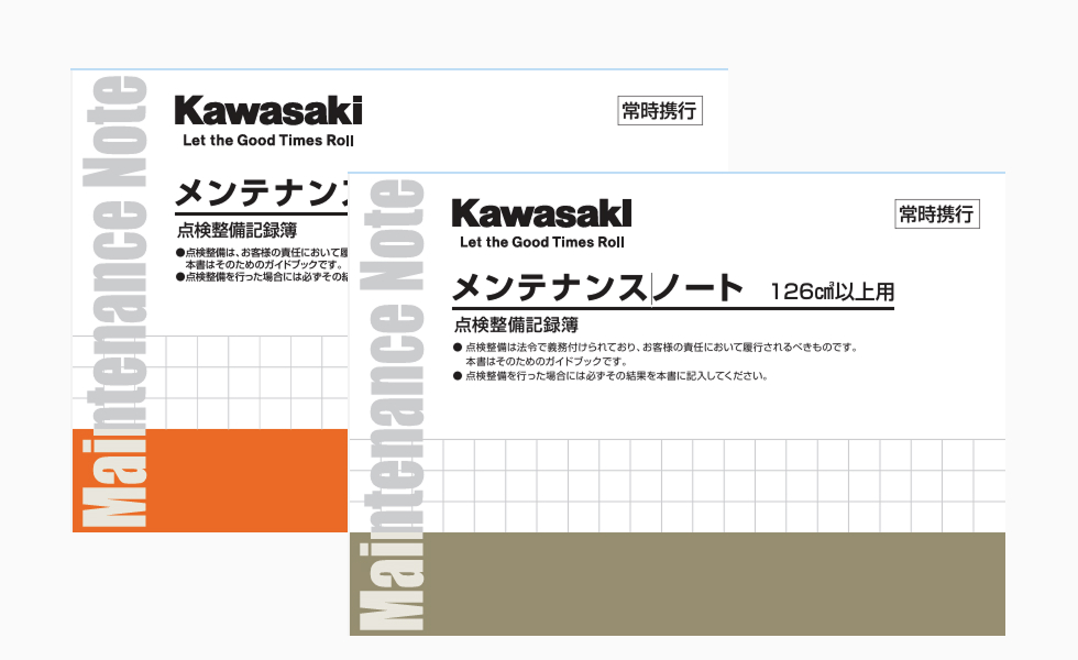 もし、お手元にない場合はカワサキ正規取扱店でご注文いただく、下記のデータを参考にして点検整備を行ってください。